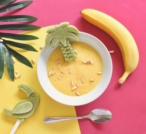 Dinner these days might start with a whole kohlrabi, filled with its fermented juice and bored with a straw, so that it looks and tastes like a coconut drink. The meal might then proceed through aebleskivers –a traditional Danish kind of fritter—brushed with a sauce made from fermented grasshopper, and end with a dessert of potato, almond, and plum purée.